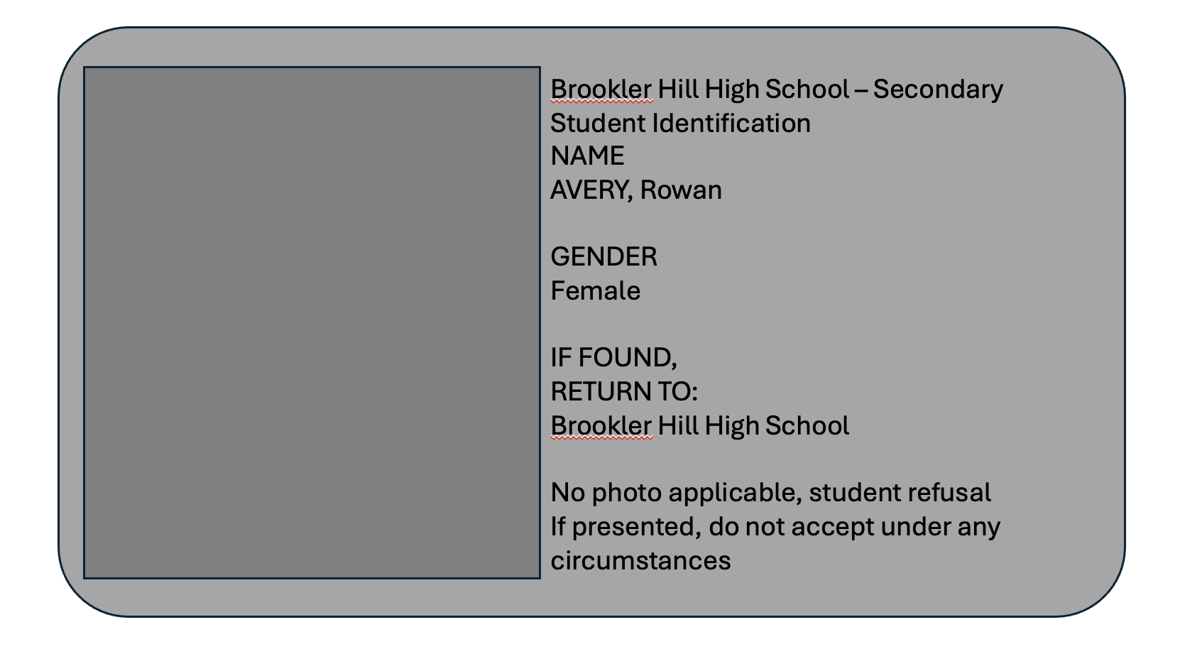 rowan's student id card. we should probably try and return this to her, but what's the point. not like she can even use it. left behind on day 1.